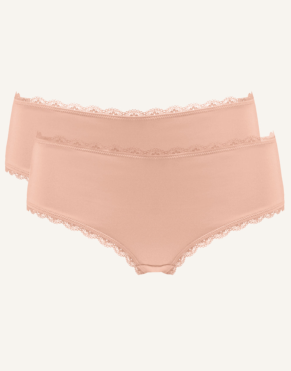 These knickers in the soft shade bellini are your everyday companion and they come in a twin pack! Playful lace adorns the waistband and leg openings of these classic knickers, turning this basic into a real eye-catcher. Your curves are flattered to perfection and the soft material prevents cutting in – so your underwear makes everyday life something special.