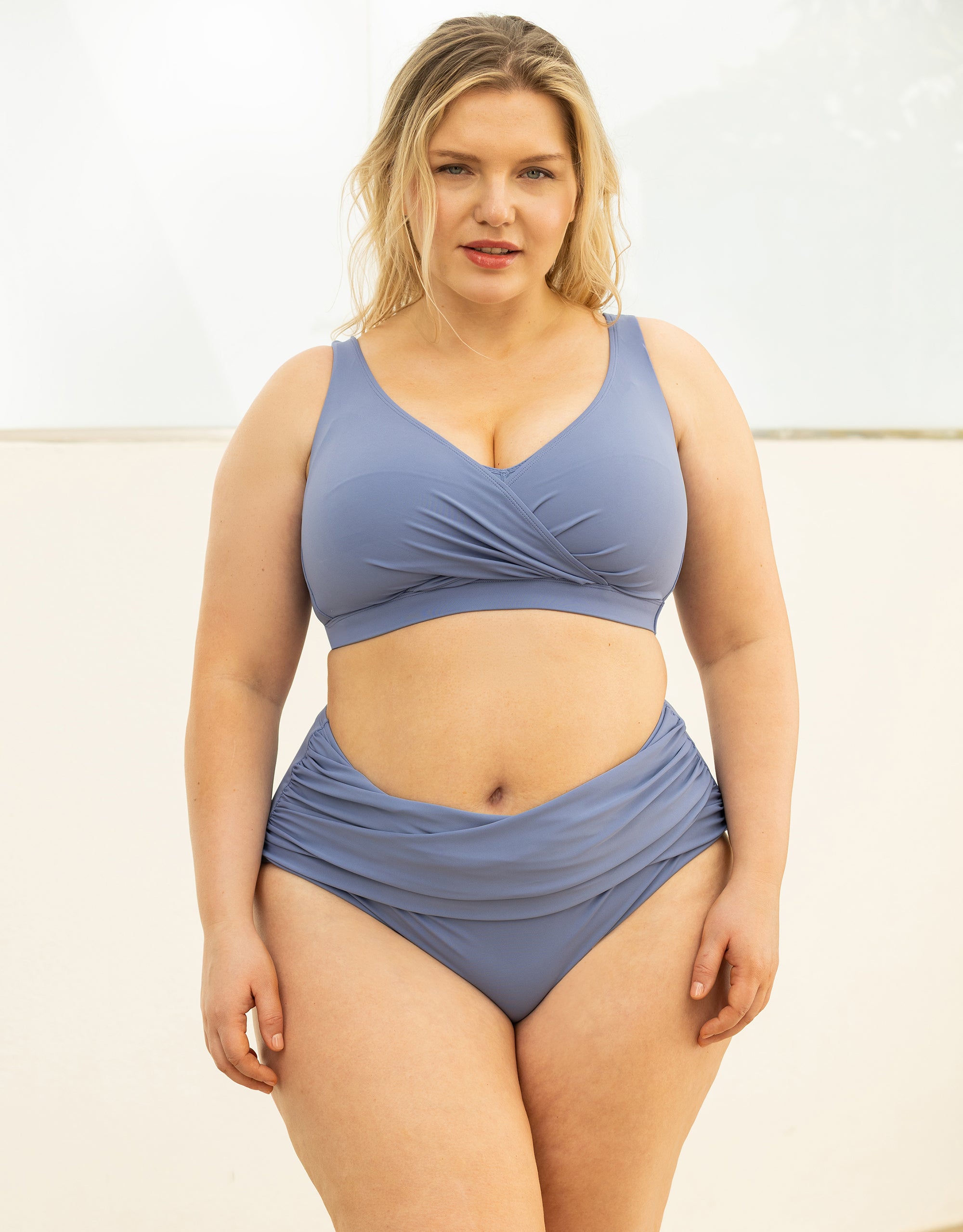 Bralette-Fans, das ist Euer Moment: Das Bikini-Top Valencia in Bluegrey ist für alle, die auch am Wasser nicht auf den Komfort ihres SugarShape-Bralettes verzichten wollen – und dabei einen sportlich-lässigen Look lieben.